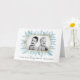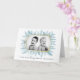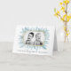 Winter evergreen foliage watercolor blue sprace Christmas photo template folded card. Personalize with your own family name and your photo Original watercolor art by Sarah Trett.