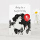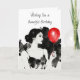 A birthday card for a woman, friend or sister. Funny aging sarcasm. You’re not getting old—you’re just becoming a classic." Cute birthday quote for her. Black and white graphic of a woman holding a red balloon.