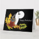 Un loup hurle à la pleine lune avec des feuilles et des glands d'automne sur fond de noir