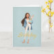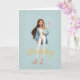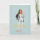 Carte Woman in Blue & White w/ Cute Bunny Bday