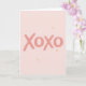 This design shows “Xoxo” centered on a soft blush-pink background, with the letters painted in a dusty rose tone that looks slightly textured, like fresh brush marks. The simple layout leaves plenty of open space, letting the message feel like a quiet note passed between close friends or sweethearts 🥰. The text sits right in the middle of the card, large and easy to read, with no other wording competing for attention. Around the letters, tiny gold flecks are sprinkled lightly, like faint confetti that catches the light and adds a gentle sparkle ❤️. The pale pink setting keeps everything calm and tender, as if the card is meant to be held close for a moment before being shared. The vertical format naturally draws your eyes down and back to the center, reinforcing the warm “hugs and kisses” feel through the clean focus of the design. Scattered gold dots appear across the top and sides, with a few drifting near the lower area for balance.