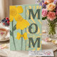Celebrate the most important woman in your life with a card as bright and beautiful as she is. This modern, hand drawn artistically designed greeting card has bold, vertical typography spelling out "MOM" against a cheerful palette of sunny yellow and soft sage green. It's perfect for a Mother’s Day sentiment, a heartfelt way to say "thank you" for everything she does, or simply when you just want to send a smile across the miles. The charming illustration of layered yellow flowers, complete with a delicate bow detail and textured background, offers a sophisticated yet warm aesthetic that any mother will cherish.