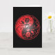 This beautiful yin yang design features two stylized tribal roses. Intricate red and black swirls decorate both sides of this traditional symbol creating a delicate pattern. The two flowers flow from the bottom of the teardrop on either side with leaves growing from the stems. This unique yin yang makes a stunning and stylish card design.