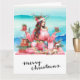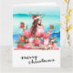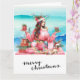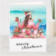 Carte Yoga Woman with Gift at Beach thème de Noël
