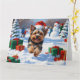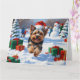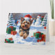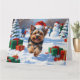 Carte Yorkipoo coule en neige avec le Casquette de Noël