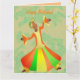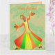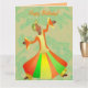 This beautiful Birthday card features an African American woman dancer wearing a orange, green, and yellow dress.