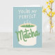 Ce design moderne et minimaliste de thé vert matcha présente un jeu de mots mignon et drôle sur les mots 'tu es mon parfait accord'. Ce design amusant sur le thème de la nourriture peut être utilisé pour un anniversaire ou la Saint-Valentin pour vos proches, partenaire, petit ami ou petite amie et utilise des couleurs bleues et vertes.