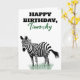 Tout le texte à l'avant et à l'intérieur de cette carte de voeux peut être customisé afin que vous puissiez créer la carte personnalisée parfaite pour toute occasion. L'avant présente une illustration réaliste d'un zèbre noir et blanc dressé dans une herbe verte.