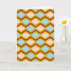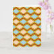Des zigzags rouges et jaunes brillants entourent des diamants bleu clair et pêchent dans cet art/design abstrait coloré de Richard H. Fay.