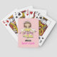 Jolies cartes à jouer rose, avec de douces illustrations d'une petite fée tenant une guirlande de fleurs. Le texte en rose, en bas, est prêt à être personnalisé pour votre fille. C'est une excellente idée de cadeau pour les petites filles.