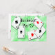 Cette invitation amusante est parfaite pour une fête d'enterrement de vie de garçon avec des casinos ou des cartes. Sur le devant, il montre quatre as sur un fond vert. Au dos, il montre quelques cartes et les détails de la fête. Tout le texte est personnalisable.