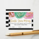 Ces cartes à deviner avec des rayures noires et blanches représentant un certain nombre de bisous sont une activité amusante pour une baby shower au thème élégant et chic. Remplissez un pot avec des Hersey's Kisses et demandez à vos invités de deviner combien de bonbons il y a dans le pot. La réponse la plus proche gagne un prix ! Le design classique à rayures noires est orné de grandes fleurs roses et menthe et d'un lettrage à paillettes dorées. Le dos présente un cœur doré.
