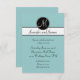 Cartes élégantes simples de réception de mariage de monogramme avec l'initiale d'arrière - plan et blanche bleu-clair de monogramme sur une étiquette noire de cercle et les noms de jeunes mariés sur une rayure noire et blanche. Customisez avec la votre information de réception de mariage, noms de monogramme, et couleurs de mariage utilisant les invites faciles à utiliser du menu de Zazzle. Cette conception simple pourtant élégante d'initiale de monogramme fonctionne pour toutes les lettres de l'alphabet et est entièrement personnalisable pour adapter à n'importe quelle combinaison de couleurs. Conception de disposition par le © d'Elke Clarke.