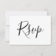 Cartes RSVP de mariage simples avec texte noir de script modifiable - vous pouvez changer le texte (noms, dates...), imprimé sur arrière - plan blanc.