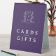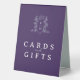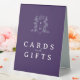 Les cartes et la table cadeau s'affichent dans un violet, argent et blanc. Utilisez pour votre table cadeau afin que les invités sachent où placer les cartes et les cadeaux. Personnalisez avec vos propres mots (ou utilisez le nôtre) et ajoutez vos propres initiales de monogramme dans la conception de la couronne monogramme en haut. D'autres articles sont disponibles. Modèle de monogramme original dessiné à la main par Sarah Trett pour www.mylittleedenweddings.com
