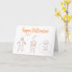 Le dessin d'un épouvantail, d'un chat et d'un chat dans un citrouille, avec Happy Halloween est imprimé sur les cartes de voeux. A l'intérieur dit, "Voici un citrouille à décorer", avec un citrouille vierge pour ajouter un visage aussi.