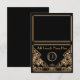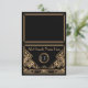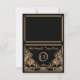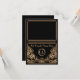 Une carte de table ou carte d'accompagnement de mariage de style vintage audacieux et élégant avec un thème "Gatsby le magnifique" des années folles dans des tons noir et or. Un fond noir met en valeur la bordure géométrique complexe de style Art déco dans des tons beige doré. Des polices de style d'époque ont été sélectionnées pour le nom de vos invités et les monogrammes de la mariée et du marié peuvent être ajoutés dans une couleur gris argent contrastée. Pliez simplement chaque carte en deux pour créer des cartes de table pliées en tente.
