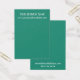 Cette carte minimaliste comporte des supports d'espace modèle pour ajouter vos coordonnées professionnelles à l'avant et à l'arrière. L'arrière - plan est recouverte d'une jolie teinte vert moyen qui peut être changée en n'importe quelle couleur. De même, le texte blanc peut être modifié à n'importe quelle couleur ou autre police que vous préférez. Faites cette carte vous-même comme vous le souhaitez !