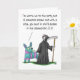 Caricature amusante carte d'anniversaire avec une conversation entre la faucheuse sinistre et une piñata sur l'entrée à une fête d'anniversaire.