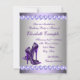 Invitation de fête d'anniversaire élégante en chaussure à talon haut léopard violet. Cette jolie invitation de fête d'anniversaire en chaussure à talon haut violet avec perles lavande est facilement personnalisable pour votre événement en ajoutant vos détails d'événement, style de police, taille et couleur de police, et libellé.