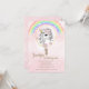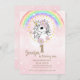 Invitation toute votre famille et des amis à votre premier anniversaire de bébé avec ces invitations magiques à thème en craignant la licorne, arc-en-ciel, nuages roses et étoiles d'or.