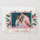 Cartes d'annonce de grossesse pour Noël. Futurs parents ! Carte avec une typographie moderne manuscrite rouge "Le plus, c'est le merrier !" pour partager votre bonne nouvelle avec la famille et les amis pendant la période des fêtes. Comprend des branches de pin fleuries blanches et bordeaux aquarelle, des baies rouges avec une composition de houx sur un fond en bois rustique clair. À l'intérieur du cadre, vous pouvez changer la photo pour la vôtre. Vous pouvez personnaliser le design en remplaçant les textes et la photo horizontale. #3347 Si vous avez besoin d'aide ou d'articles assortis, n'hésitez pas à me contacter !