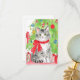 portrait d'aquarelle d'un chaton mignon assis sous un sapin de Noël avec un ruban rouge attaché autour du cou.