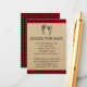 Cartes de baby shower Lumberjack bring a book avec des empreintes de pieds de bébé mignonnes sur un fond à carreaux rustique boho buffalo plaid. Vous pouvez facilement personnaliser ces cartes de baby shower mignonnes pour votre événement en ajoutant simplement vos détails dans le style de police et la formulation que vous préférez.