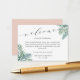 Glissez ces petites cartes chic dans vos sacs de bienvenue ou vos paniers mariages pour accueillir vos invités hors de la ville. Conçues pour coordonner avec notre collection Tropical Foliage mariage, les cartes sont dotées d'un script moderne et d'un lettrage en bloc accentué de feuilles de fronde de palmier aquarelle en vert tropical. Les cartes s'inversent vers le rose vif de la plage.