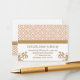 Elégante et belle carte de mariage marocaine d'inspiration baroque avec un design motif géométrique rose et or roux et des fleurs dorées dorées et chaudes. Cette carte haut de gamme et luxueuse est parfaite pour une mariage à thème marocaine, arabe ou aladdin. L'avant et l'arrière de ces personnages, les cartes de réception peuvent être personnalisées avec vos coordonnées de réception de mariage. Oeuvre et design © Chrissy H. Studios, LLC. Tous droits réservés.