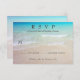 Carte de réponse à l'événement tropical à joindre avec invitation à un mariage, une douche ou une fête. Belle eau bleu de l'océan et sable de plage est l'arrière - plan pour noir, texte imprimé. Inclure le type d'événement avec la date de réponse en bas.