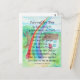 Le tableau représente une maison avec un poème inspiré du Pont Arc-en-Ciel pour le deuil d'un animal de compagnie. Le texte du poème est "Adieu pour l'instant, Nous avons un corps pour un court moment sur cette Terre. Mon esprit est comme le vôtre et ne mourra jamais. Je vous attendrai de l'autre côté du Pont Arc-en-Ciel. Jusqu'à ce jour, notre amour nous lie à travers nos souvenirs de joie de notre temps passé ensemble ici. L'amour vit pour toujours. Art & Poème de Laurel Latto © 2016 " Vous pouvez personnaliser cette carte de condoléances pour animaux de compagnie avec vos propres options. Le Pont Arc-en-Ciel est considéré comme le pont spécial d'amour et de lumière que les âmes des animaux de compagnie traversent pour aller au ciel lorsqu'ils quittent leur corps terrestre. C'est un rappel que leurs âmes continuent de vivre dans l'Esprit
