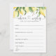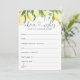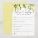 Ce dessin à l'aquarelle est une œuvre d'art époustouflante qui capture parfaitement l'essence lumineuse et acidulée des citrons. Les tons jaunes vibrants de l'aquarelle créent un arrière-plan dynamique et captivant pour les cartes "Conseils et Vœux", ajoutant une touche de ludicité et de fantaisie au design. L'effet global de ce design est celui de la joie et du plaisir, évoquant des sentiments de bonheur et de célébration parfaits pour une fête de mariage ou toute autre occasion spéciale. Des articles assortis sont disponibles.