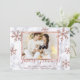 Cartes d'annonce de grossesse pour Noël avec photo. Futurs parents ! Carte de script à typographie manuscrite rose moderne "L'amour grandit !" pour partager votre bonne nouvelle avec la famille et les amis pendant la période des fêtes. Caractéristique : cadre de flocon de neige à paillettes de faux or rose sur fond de marbre gris blanc. Au milieu, un modèle de photo horizontale avec un cadre en feuille d'or rose. Au dos, fond en feuille de faux or rose. Vous pouvez personnaliser le design en remplaçant les textes et la photo verticale. #3349 Si vous avez besoin d'aide ou d'articles assortis, veuillez me contacter !