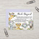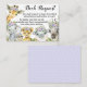 Cartes de demande de livre sur le thème safari avec de mignons animaux de safari bébé et de jolies fleurs violettes sur un fond à points lavande et violet. Ces cartes de demande de livre sur le thème safari fille sont facilement personnalisables avec votre texte. Vous pouvez également ajouter une couleur de fond à l'avant.
