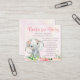 Cartes de demande de livre éléphant avec un adorable bébé éléphant fille sur un joli fond floral aquarelle. Ces cartes de demande de livre éléphant mignonnes sont facilement personnalisables avec le texte de votre choix.