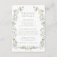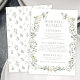Elégante verdure botanique eucalyptus feuilles couronne avec fleurs blanches printemps ou carte de détails de mariage de jardin d'été.