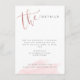 Les cartes de détails de mariage simple moderne présentent un lettrage manuscrit en couleur or rose faux sur fond aquarelle rose blush, élégant et stylé.