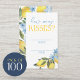 Élégantes, douces et simples Cartes de devinette Combien de baisers pour la future Mme. Paquet de 100. Partie de notre collection de fête de mariage au citron aquarelle et floral. Caractéristiques de belles fleurs aquarelles élégantes poussiéreuses bleu ardoise et citrons jaunes doux.