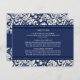 Insertions de carte de direction pour mariage dans élégant et moderne bleu marine foncé et crème de blanc classique motif floral damassé. Customisez ces cartes avec vos indications mariages ou d'autres informations à inclure avec vos invitations de mariage, également parfait pour les fêtes d'anniversaire ou d'anniversaire. Disponible dans une large gamme de produits mariages correspondants.