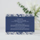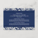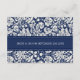 Plaques de direction pour mariage dans élégant et moderne bleu marine foncé et blanc classique motif damassé floral classique. Customisez ces cartes avec vos indications mariages ou d'autres informations à inclure avec vos invitations de mariage, également parfait pour les fêtes d'anniversaire ou d'anniversaire. Disponible dans une large gamme de produits mariages correspondants.