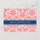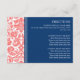 Insertions de carte de direction pour mariage dans élégant et moderne pêche rose orange, bleu marine foncé et blanc chic et classique floral damask motif vintage. Customisez ces cartes avec vos indications mariages ou d'autres informations à inclure avec vos invitations de mariage, également parfait pour les fêtes d'anniversaire ou d'anniversaire. Disponible dans une large gamme de produits mariages correspondants.