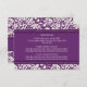 Insertions de carte de direction pour mariage dans élégant et moderne aubergplant violet foncé et blanc classique motif floral damassé. Customisez ces cartes avec vos indications mariages ou d'autres informations à inclure avec vos invitations de mariage, également parfait pour les fêtes d'anniversaire ou d'anniversaire. Disponible dans une large gamme de produits mariages correspondants.