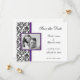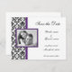 Cartes de faire-part de damas noir avec un cadre violet autour de votre photo. Cartes formelles avec enveloppes incluses.