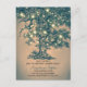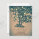 Cartes de faire-part de date rustiques avec une guirlande lumineuse suspendue aux branches d'un vieil arbre bleu. Ensemble incroyable d'arbres vintage pour mariages rustiques à la campagne avec des lumières scintillantes.