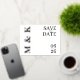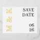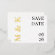 Annoncez votre grand jour avec style et sophistication en utilisant cette carte de save the date moderne en feuille d'or. Dotée d'une typographie élégante et d'un design inspiré de la métallurgie, cette carte équilibre parfaitement le minimalisme contemporain et l'élégance intemporelle. L'aspect luxueux de la feuille d'or garantit que votre annonce se démarque et laisse une impression durable sur chaque invité.