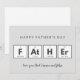 Cartes de fête des pères Cool Fun : Cette carte drôle de fête des pères en gris avec le texte "Joyeuse fête des pères" est parfaite pour papa qui aime la science et la chimie. Cette carte de typographie amusante est conçue pour montrer votre amour en ce beau jour qui honore tous les pères du monde entier. Vous pouvez également personnaliser cette carte de fête des pères pour rendre votre attention plus spéciale. (carte personnalisée) Joyeuse fête des pères à votre papa !