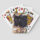 Chat noir avec les yeux verdâtres et jaunes dans le feuille d'automne - photographie sur des cartes de jeu.