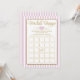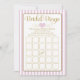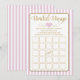 Cartes de bingo de douche nuptiale en rose et or. Une activité wedding shower amusante avec des rayures roses et blanches avec un accent de parties scintillant en or et du texte en or. Amusant et élégant, ce jeu de bingo de douche nuptiale demande aux invités d'écrire les articles qu'ils pensent que la future mariée recevra, la première personne à obtenir 5 dans une rangée crie "Bingo !"