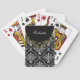 Cartes de jeu personnalisées jolie par damassé avec l'espace élégant de motif et de monogramme de damassé de noir et de couleur d'or pour ajouter votre nom ou initiales. Laissez-nous vous des cartes de jeu dans le style. Faites votre propre plate-forme des cartes pour vos amis ou famille. Conçu pour les femmes ou les filles qui aiment les damassés de fantaisie.